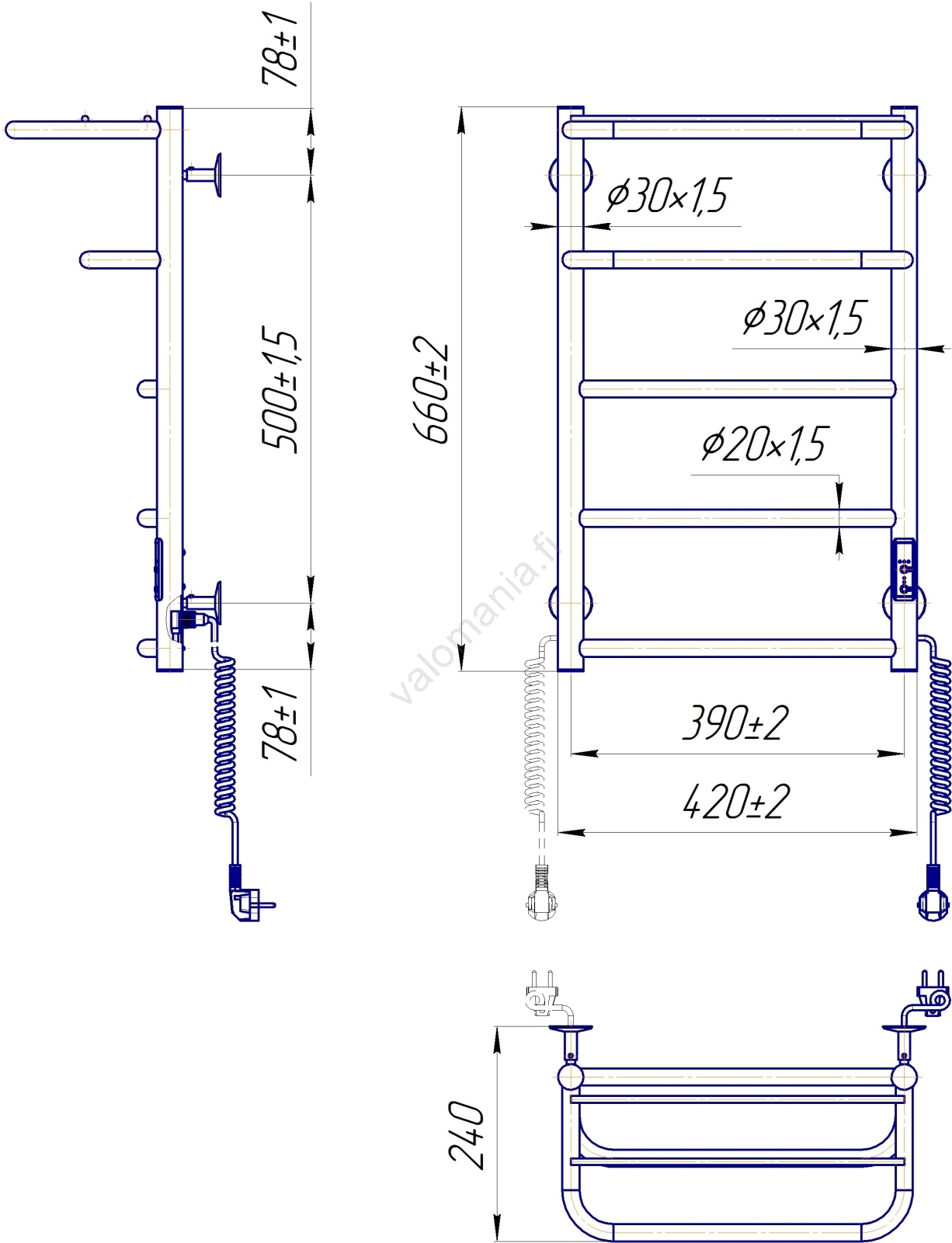 Kylpyhuoneen pyyhekuivain HOTEL 75W/230V 65x43 cm ruostumatonta terästä/valkoinen oikeakätinen | Val