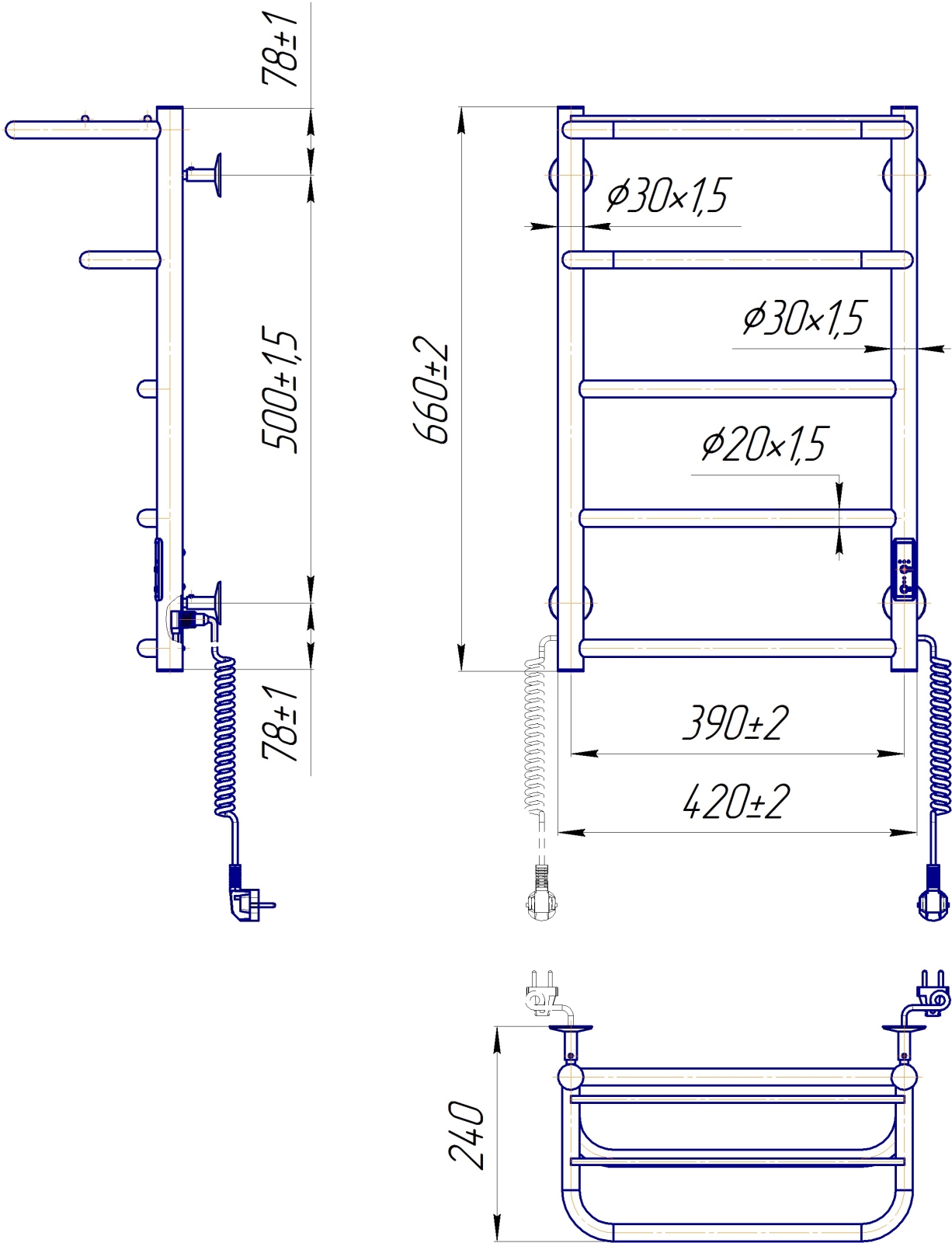 Kylpyhuoneen pyyhekuivain HOTEL 75W/230V 65x43 cm ruostumatonta terästä/valkoinen oikeakätinen