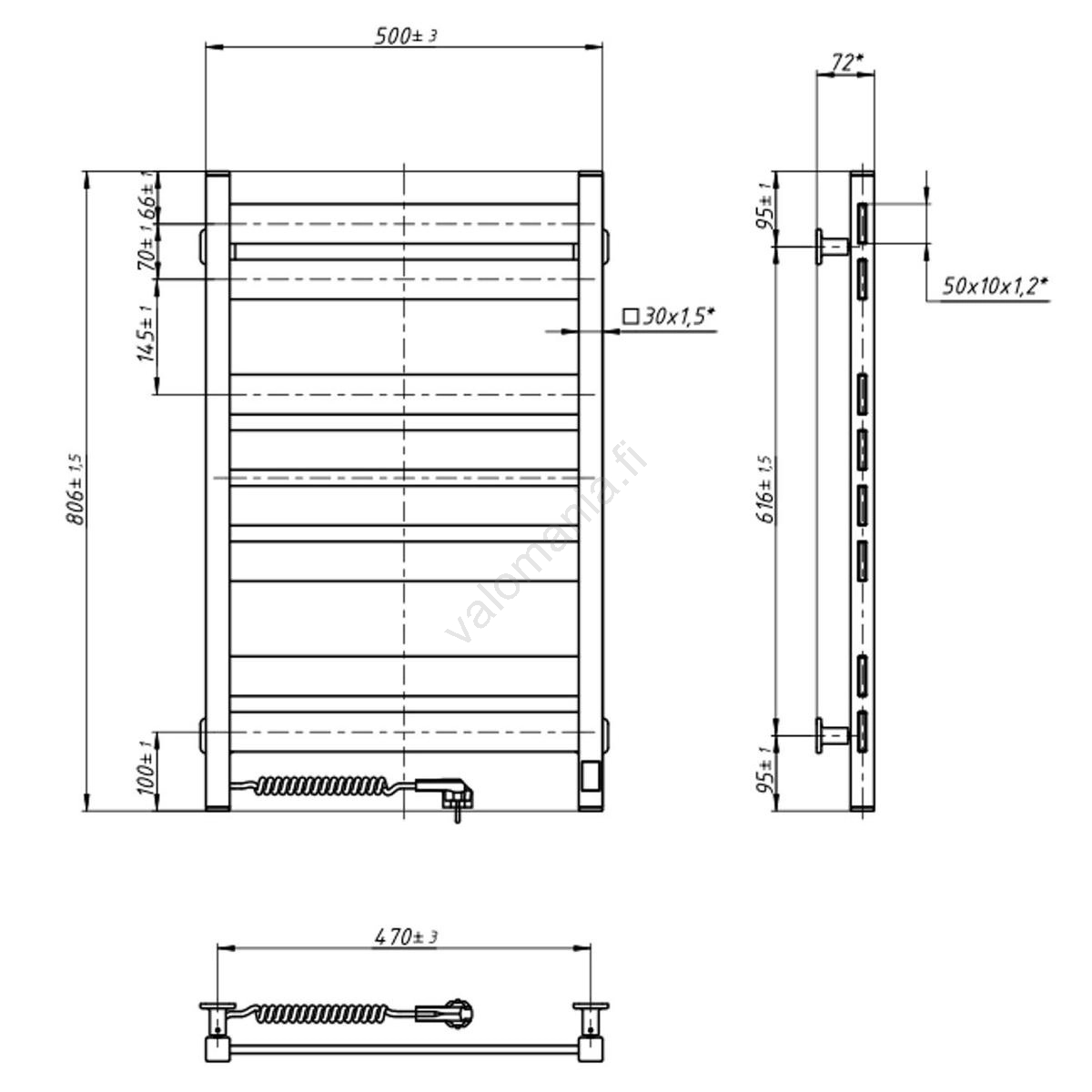 • Sähköinen pyyhekuivain termostaatilla LARGO 168 W 80 x 50 cm, musta, vasen malli