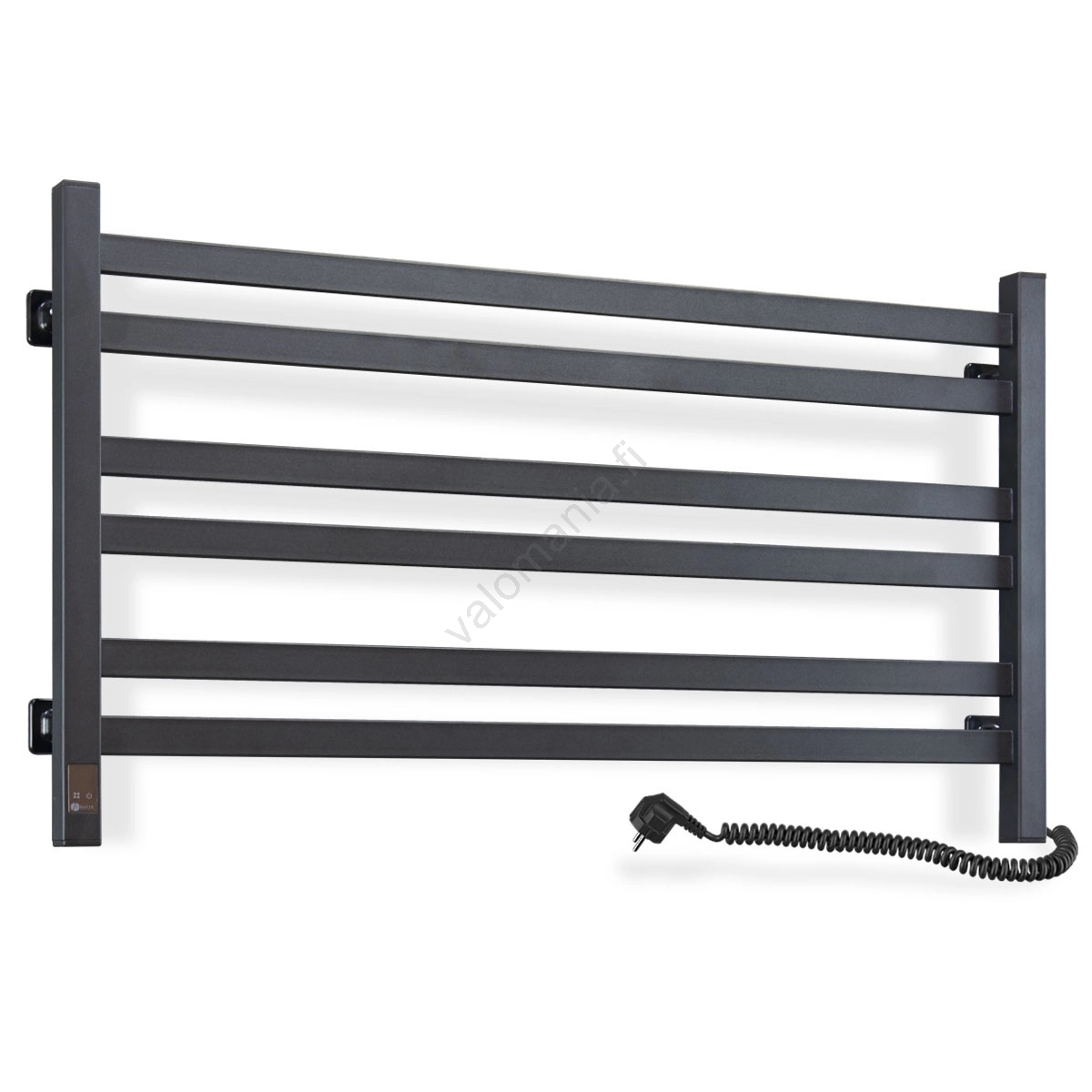 Kylpyhuoneen pyyhekuivain termostaatilla AVANGARD 316W/230V 50,6 cm IP44 musta oikeanpuoleinen kulmikas