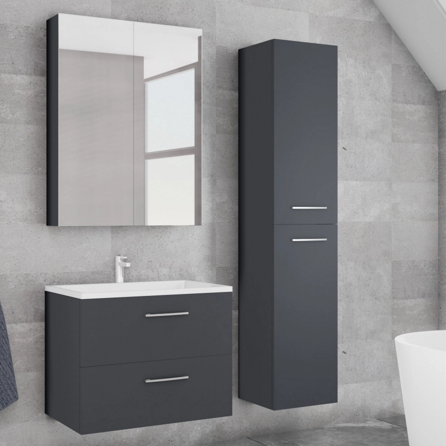 Kylpyhuoneen pesuallaskaappi KATE + peilikaappi + seinäkaappi antrasiitti