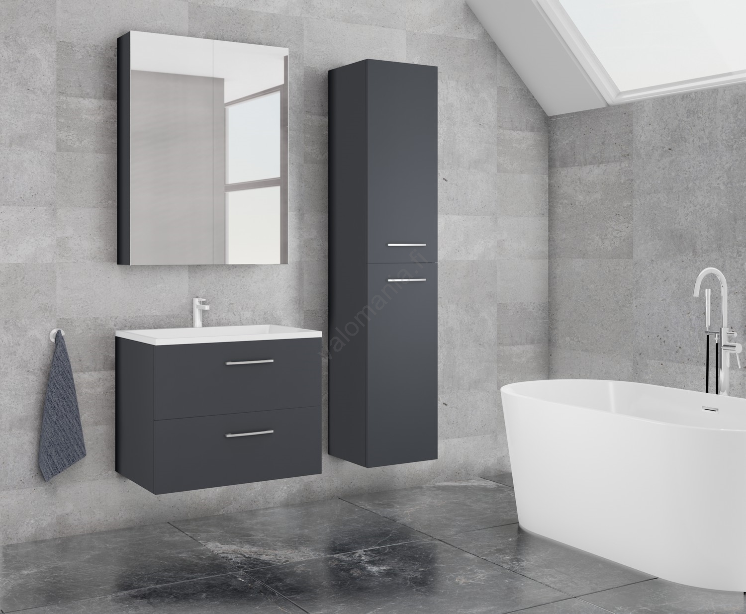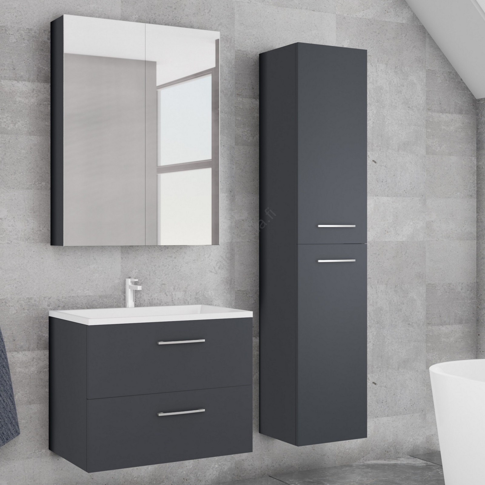 • Kylpyhuoneen pesuallaskaappi KATE + peilikaappi + seinäkaappi antrasiitti