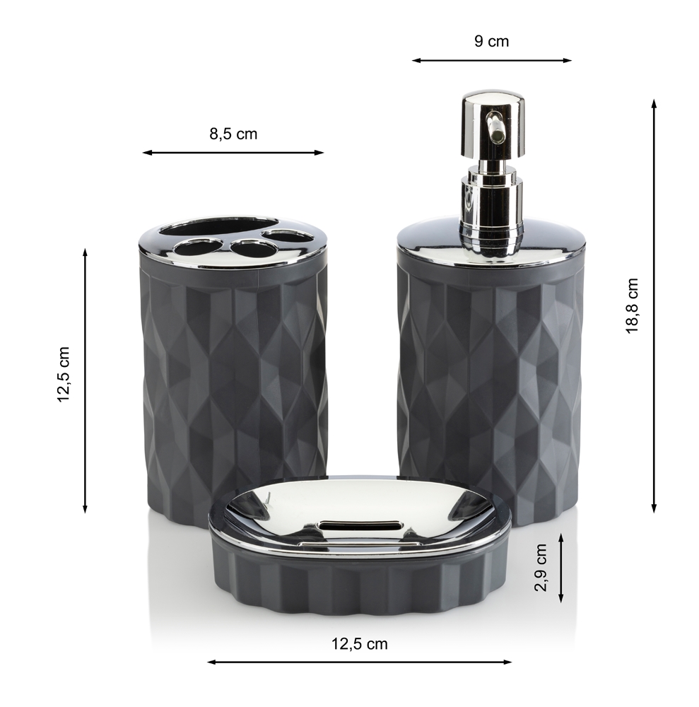 • Setti sisältää: saippua-annostelijan, saippuakupin, hammasharjatelineen ja -telineen, roskakorin sekä wc-harjan.