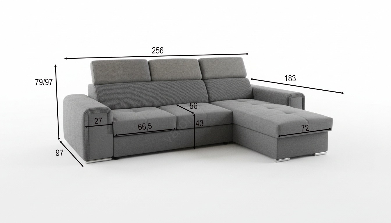 Käännettävä L-mallinen kulmasohva SALVADA, vuoteeksi avattava ja säilytystilalla, tummanharmaa | Val