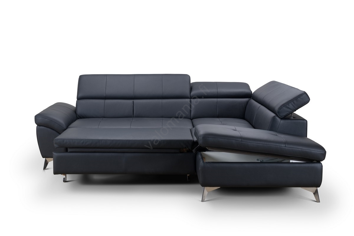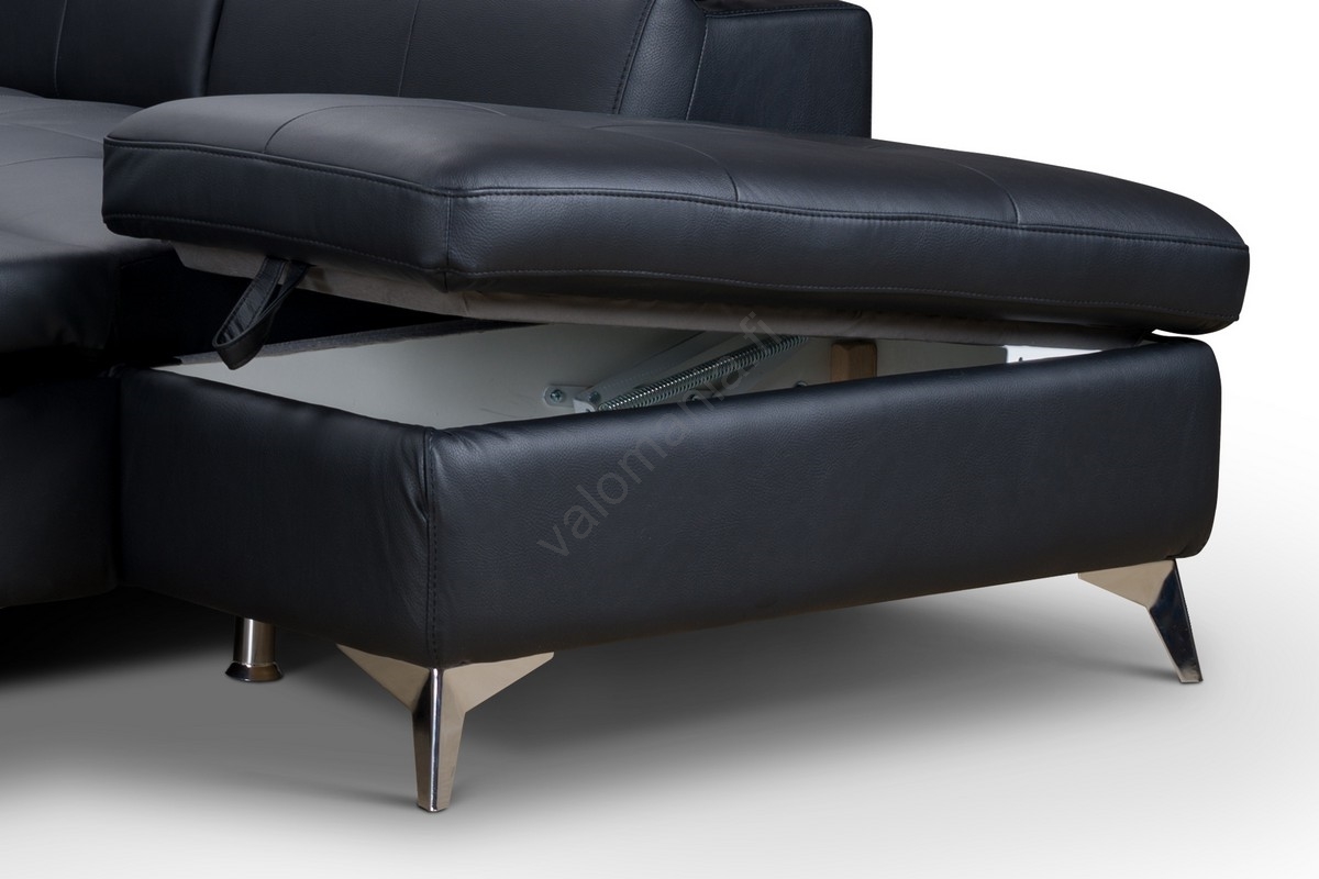 • Nahkainen kulmasohva L-mallinen SALERNO II oikea musta, avattava