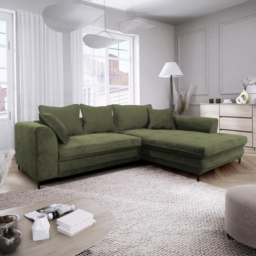 • LAGOA avattava oikeanpuoleinen L-muotoinen kulmasohva säilytystilalla, vihreä