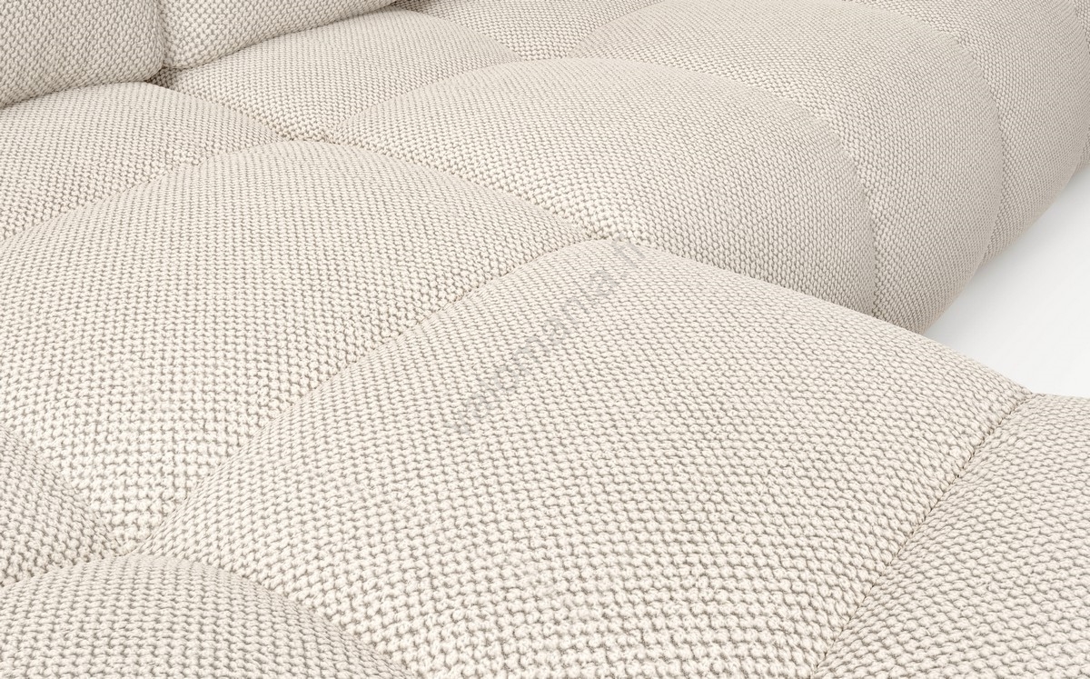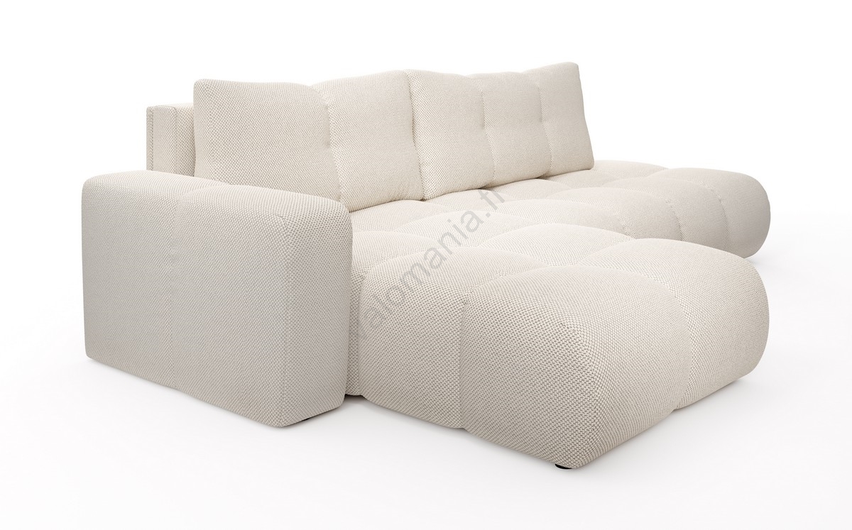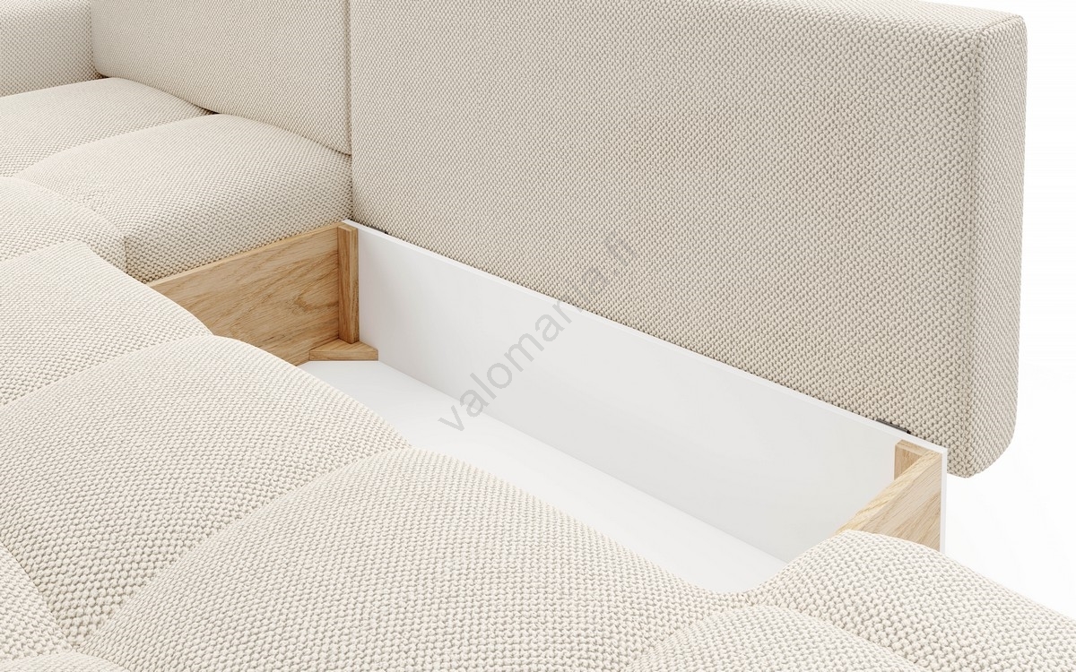 • Vuoteeksi avattava L-mallinen verhoiltu kulmasohva ALMADA, oikeanpuoleinen, säilytystilalla, vaaleanbeige