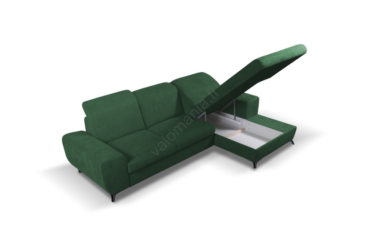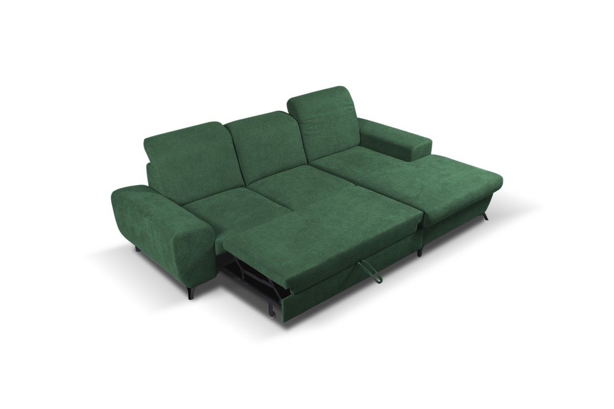 Vuoteeksi avattava verhoiltu L-muotoinen kulmasohva säilytystilalla ALTA, oikeanpuoleinen, vihreä |