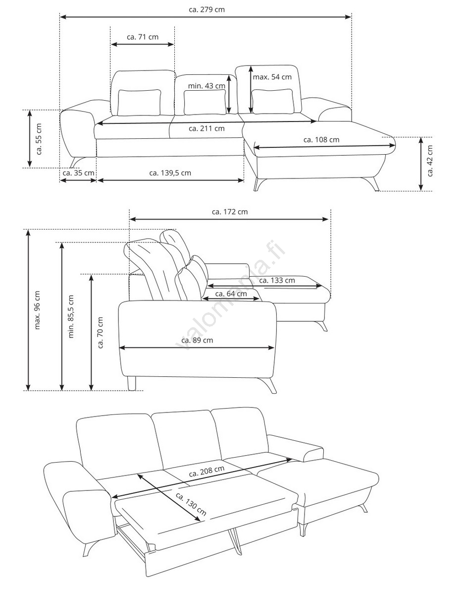 • Sohvassa on tilava säilytystila vuodevaatteille ja muille kausitavaroille.