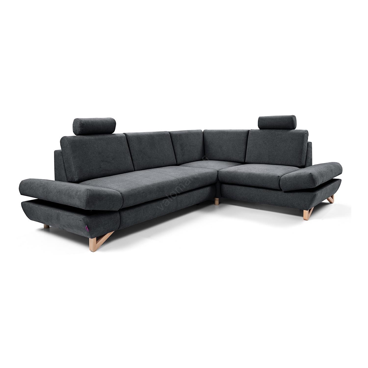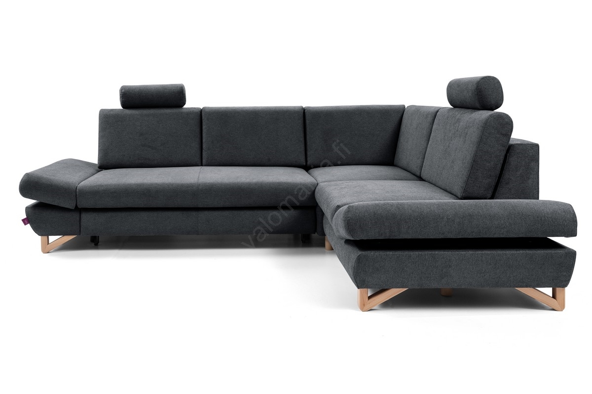 • Vuoteeksi avattava verhoiltu L-muotoinen kulmasohva säilytystilalla AVESTA, oikeanpuoleinen, antrasiitti