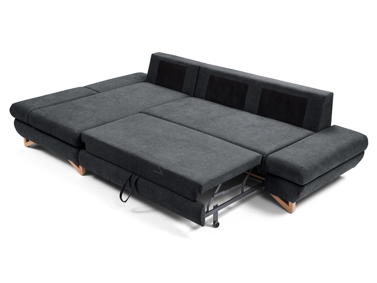 AVESTA L-mallinen vasenkätinen avattava verhoiltu kulmasohva säilytystilalla antrasiitti