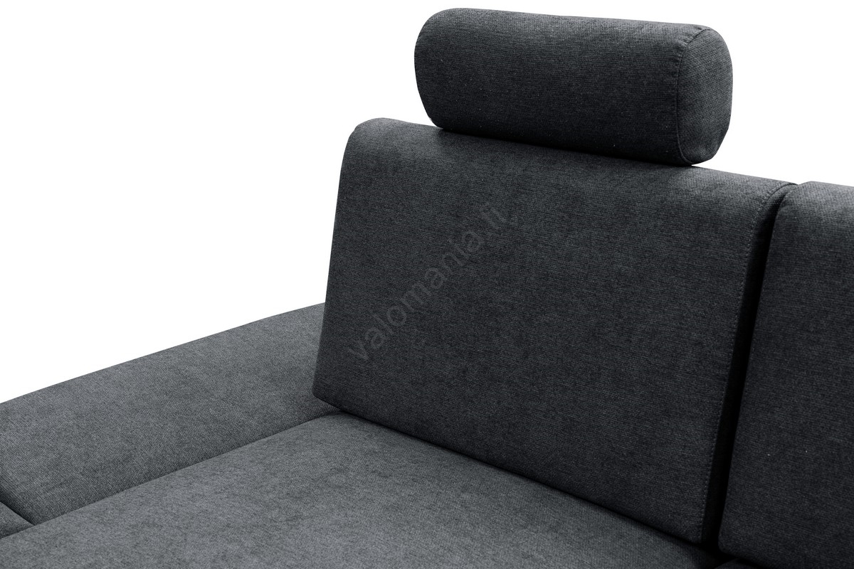 • AVESTA L-mallinen vasenkätinen avattava verhoiltu kulmasohva säilytystilalla antrasiitti