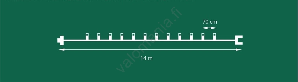 • Voit kytkeä sarjaan enintään 4 jatkopalaa, jolloin valaistu ketju voi olla maksimissaan 70 m pitkä.
