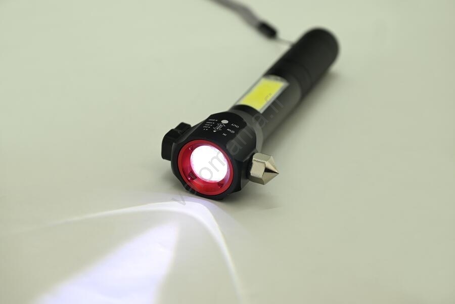 • Uudelleenladattava LED-lamppu, jossa etuvalo zoom‑toiminnolla, sivulla hajavalon tarjoava COB‑valaistus ja monikäyttöiset hätätoiminnot.