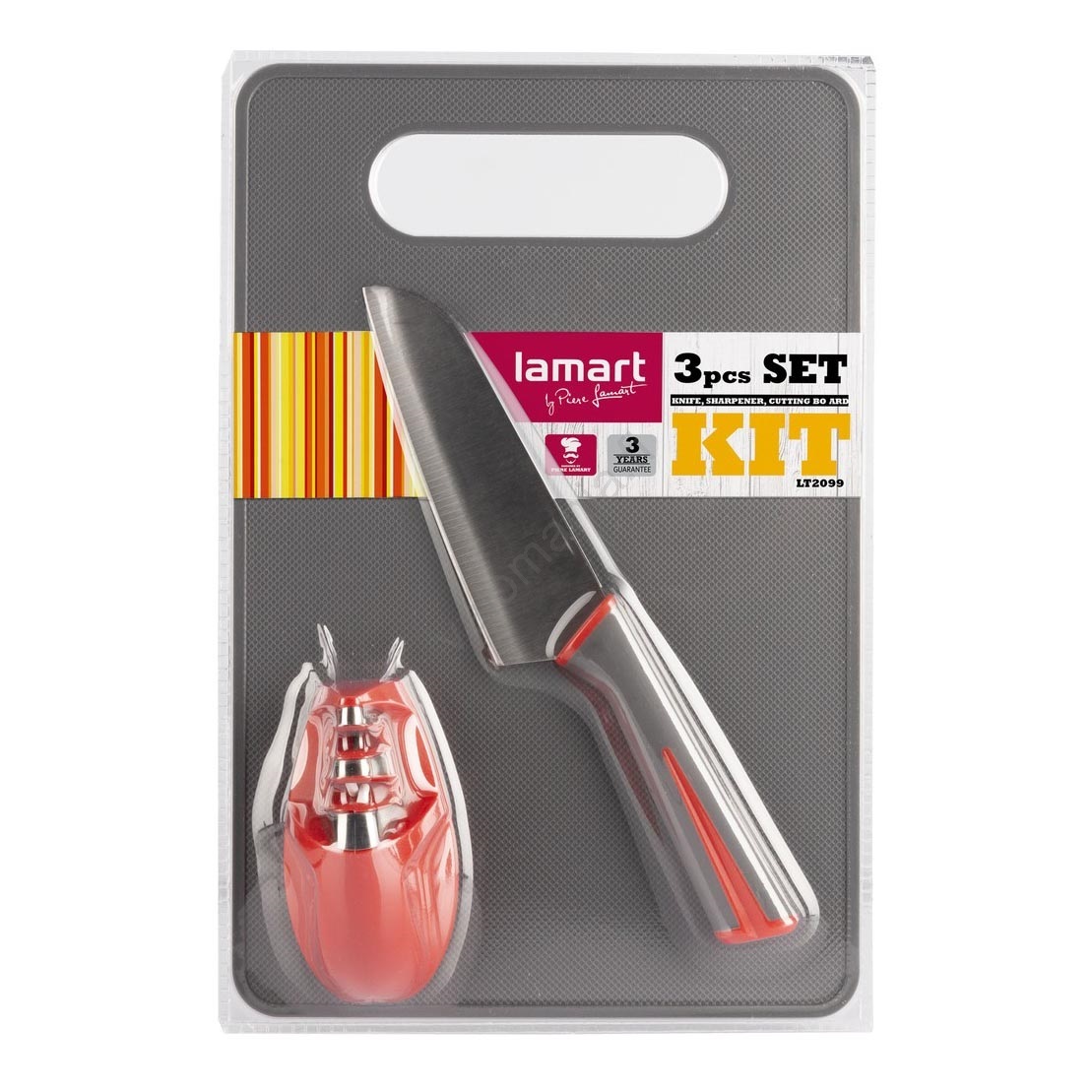 Lamart - Keittiösetti 3 osaa - veitsi, teroitin ja leikkuulauta