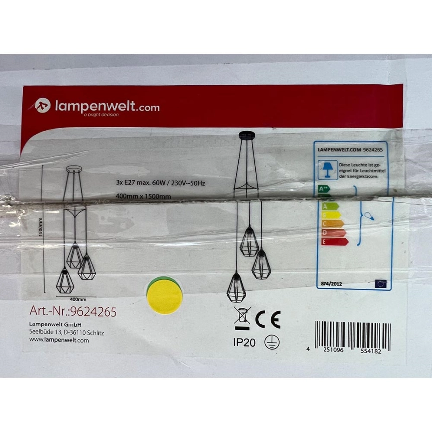 Lampenwelt - Kattokruunu johdossa ELDA 3xE27/60W/230V | Valomania