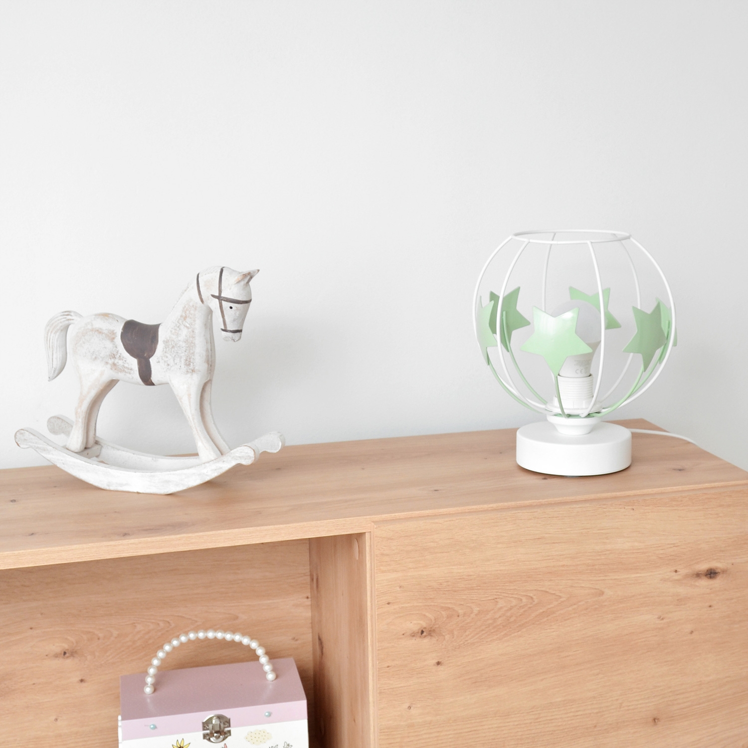 Lasten pöytävalaisin STARS 1xE27/15W/230V vihreä/valkoinen | Valomania
