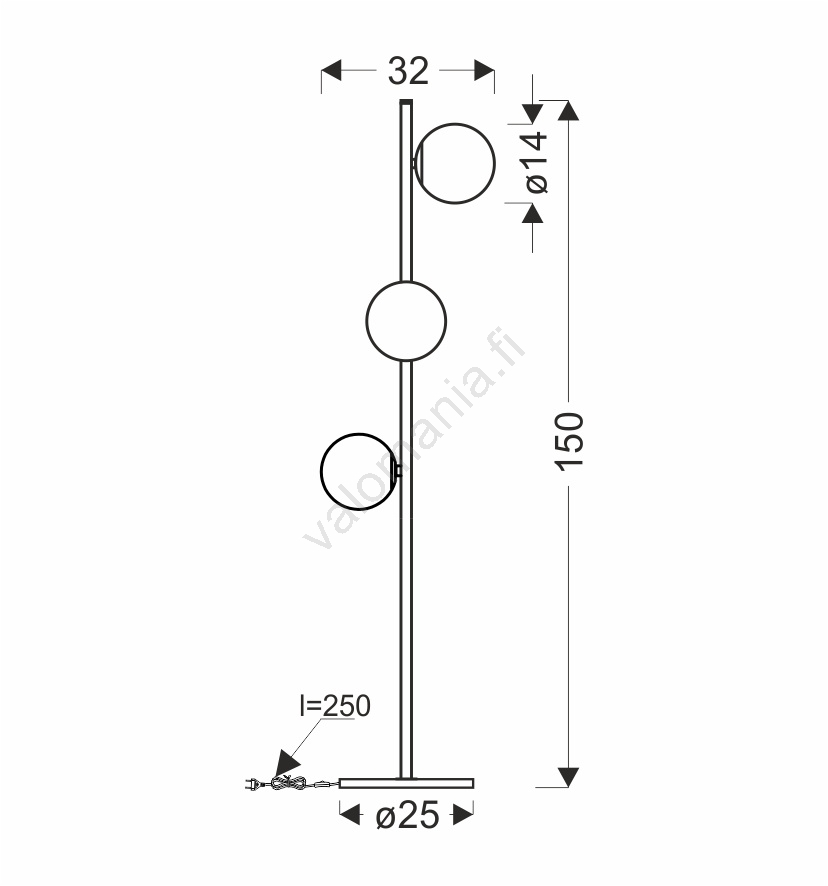 Lattialamppu KAMA 3xG9/28W/230V musta/savuinen musta
