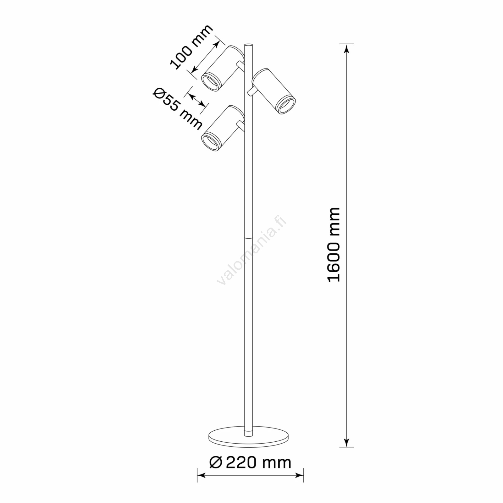 Lattialamppu PARIISI 3xGU10/12W/230V musta | Valomania
