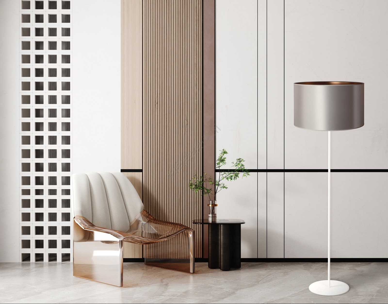 Duolla - Lattialamppu CANNES 1xE27/15W/230V halkaisija 45 cm hopea/kupari/valkoinen | Valomania