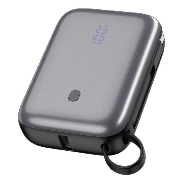 Power Bank 10000 mAh 20W PD sisäänrakennetulla 1m USB-C-kaapelilla, musta | Valomania