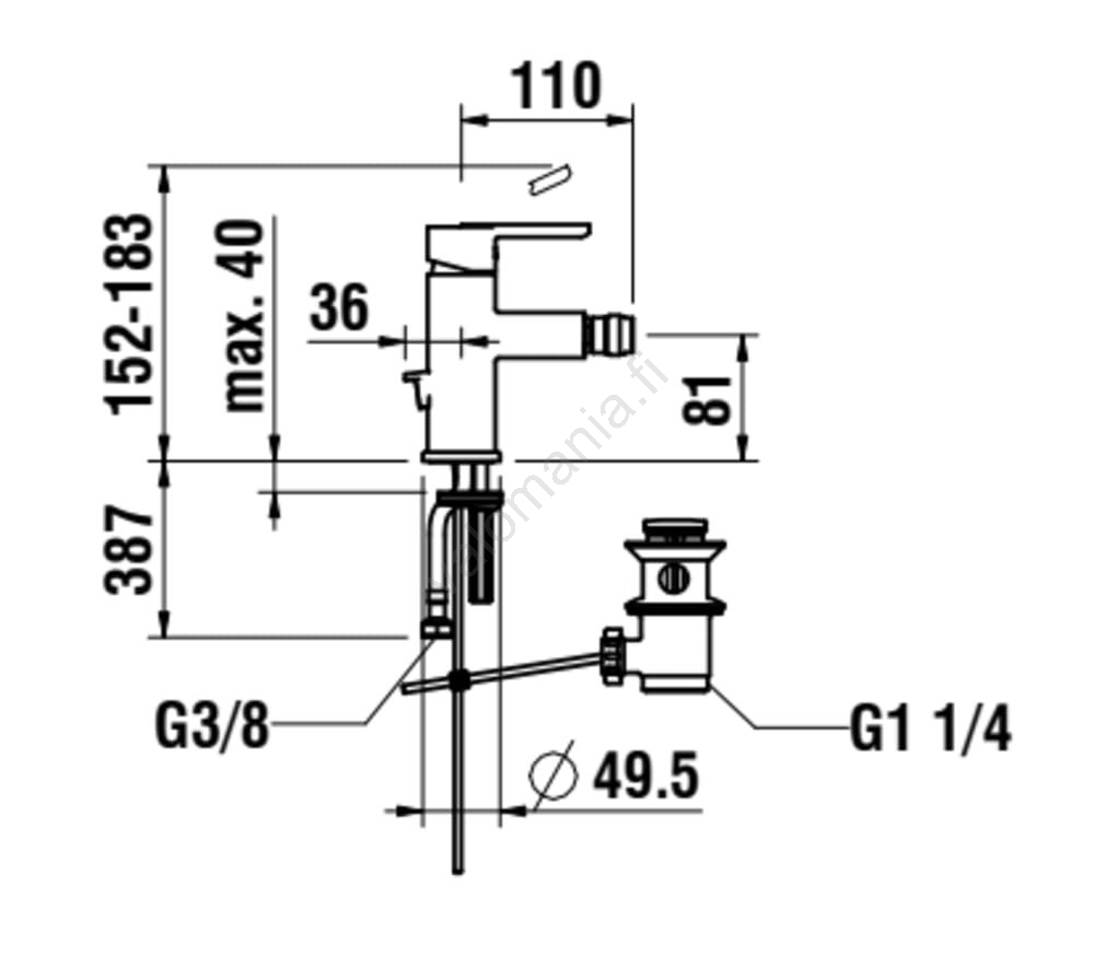 • Yhden vivun bidet-sekoitin korkealla paineella.