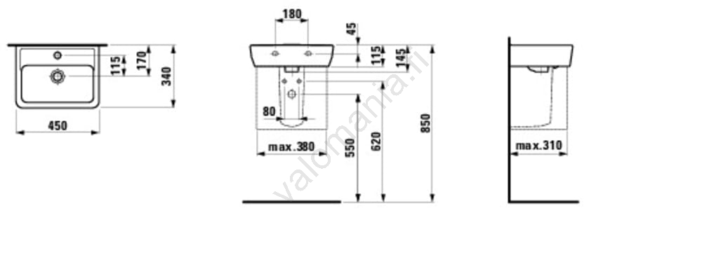 LAUFEN H8119510001041 - PRO pesuallas tasoon tai seinään asennettava 45 x 34 cm, keramiikka, valkoinen
