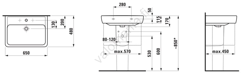 LAUFEN H8189530001041 - PRO 65x48 cm taso/seinään asennettava pesuallas, keramii | Valomania