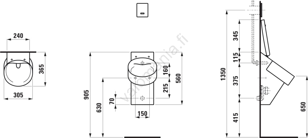 • Pisuaari on varustettu asennusrei'illä kannelle (kansi ei sisälly toimitukseen).