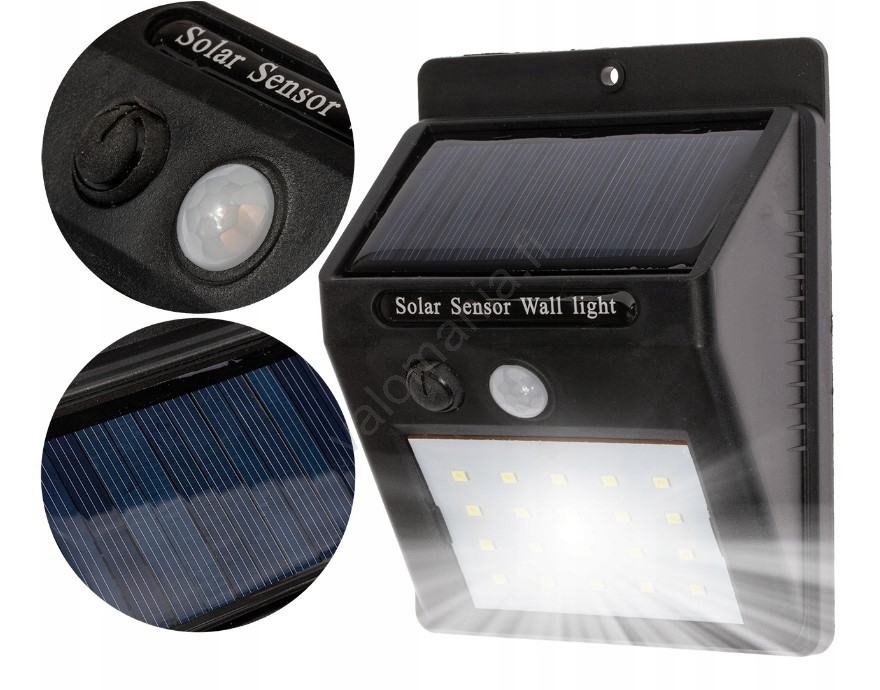 LED-aurinkoseinävalaisin liiketunnistimella LED/0,55W/3,7V 1200 mAh IP65 | Valomania