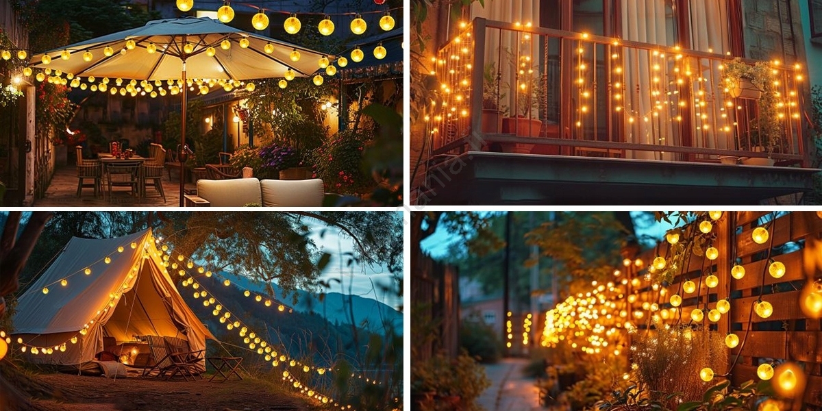 LED-aurinkokennolla toimiva koristevaloketju 30 LED/8 toimintoa 500 mAh 6,5 m IP67 lämmin valkoinen