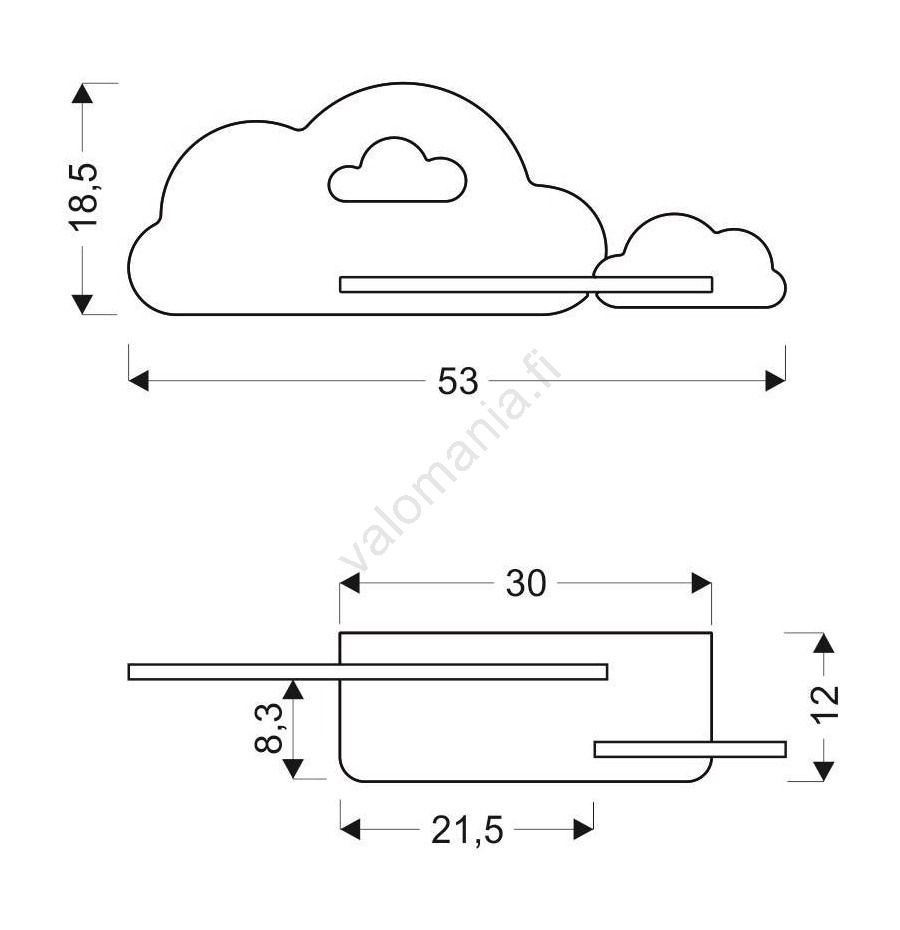 • Lasten LED-seinävalaisin hyllyllä CLOUD LED/5W/230V sininen/valkoinen