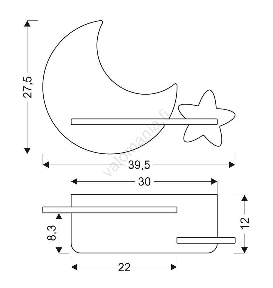 • Lasten LED-seinävalaisin hyllyllä MOON LED/5W/230V