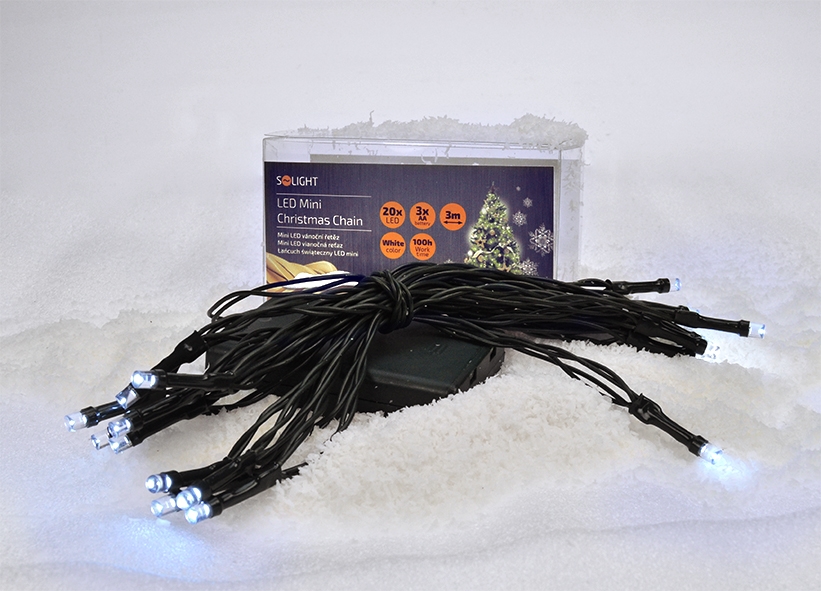 Solight 1V50 -W - LED -jouluvalot 20xLED/3xAA 3,3m viileä valkoinen | Valomania