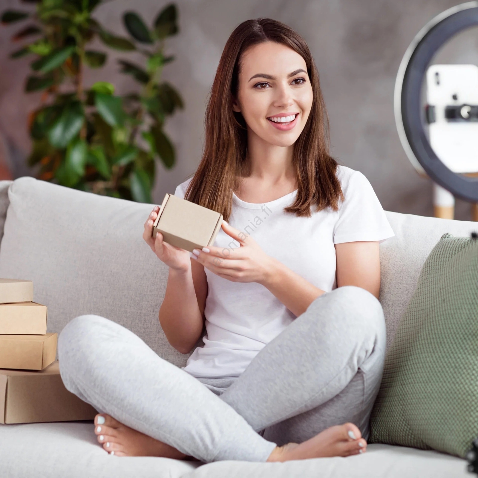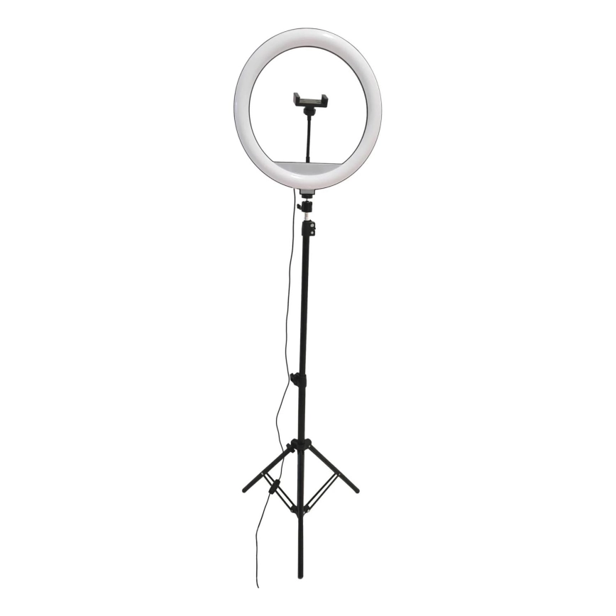 • Pyöreä valaisin jalustalla, joka sopii kaikille tubettajille, vaikuttajille ja striimaajille.