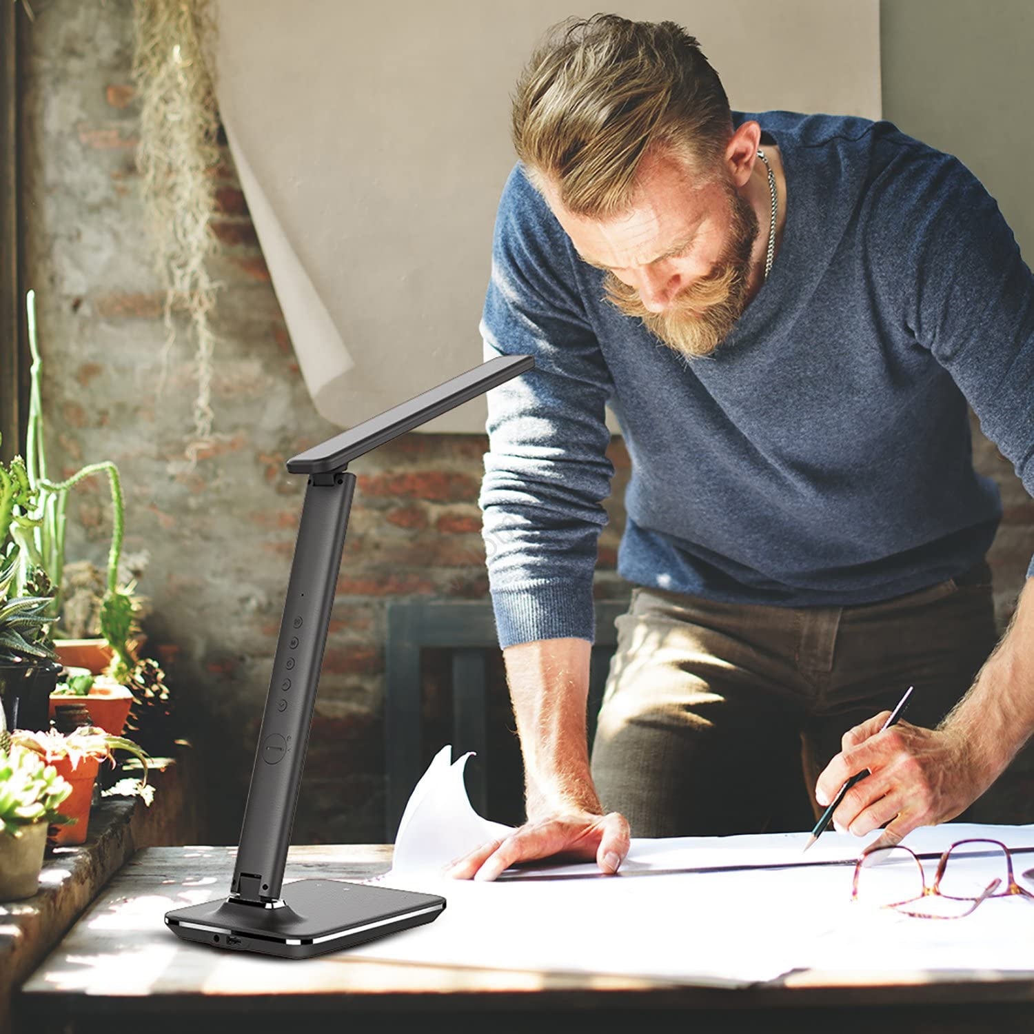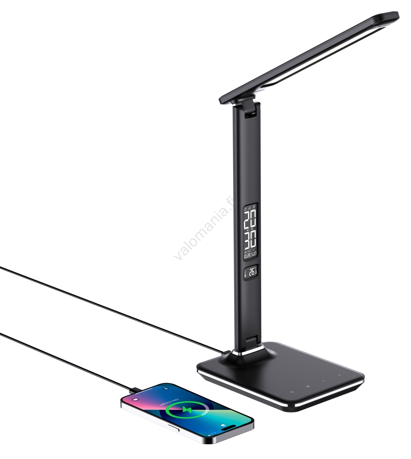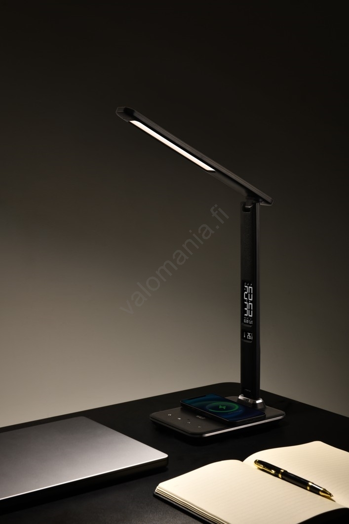 • LED himmennettävä pöytävalaisin langattomalla QI-latauksella ja USB-liitännällä KINGFISHER LED/8,5W/230V musta