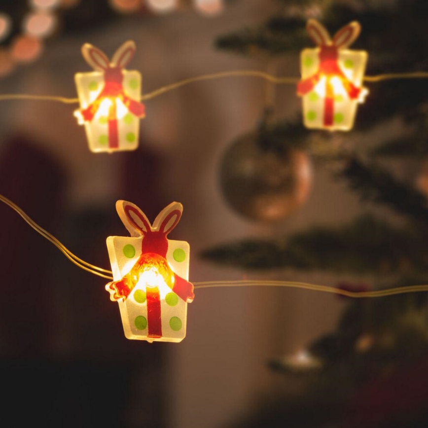 • Koristeellinen LED-ketju, jossa on valopisteitä joululahjan muodossa.