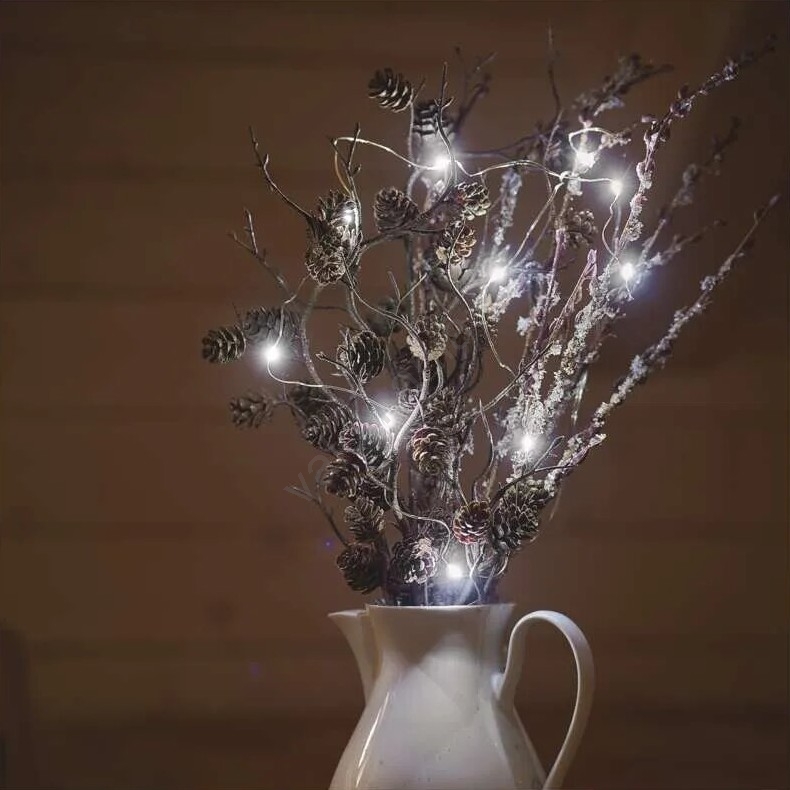 LED-valoketju 20 LED/2×AA, 2,4 m, kylmänvalkoinen | Valomania