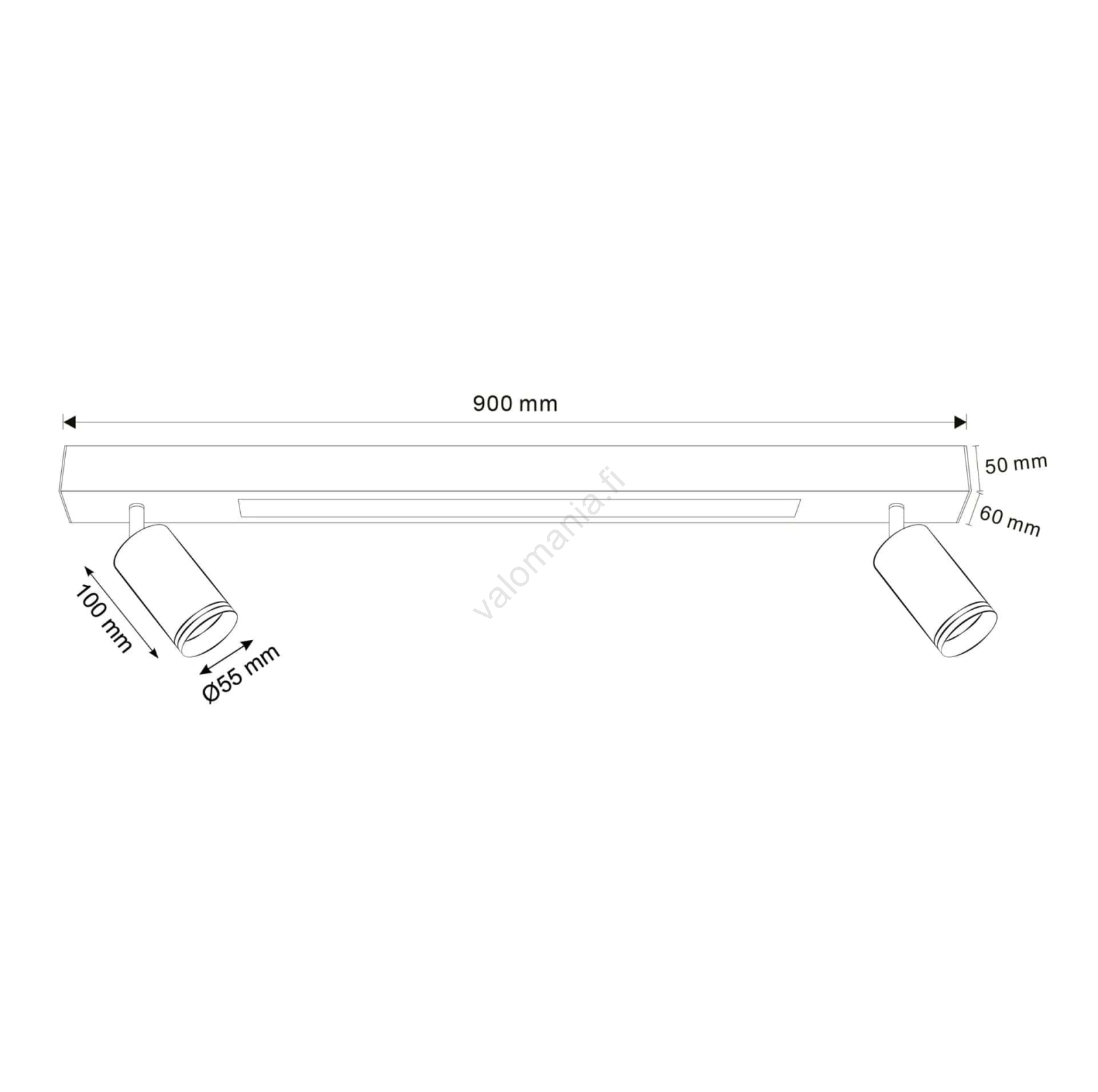 • Kaksi kohdevalonlähdettä vaativat enintään 10W tehoiset GU10-kantaiset lamput (lamput eivät sisälly toimitukseen).