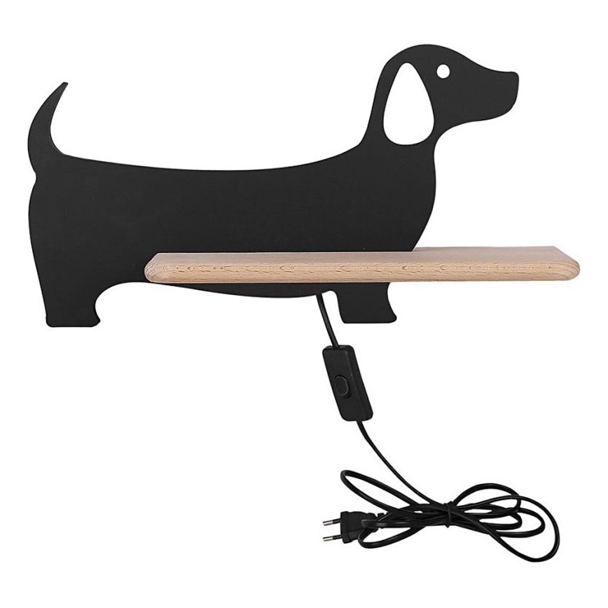 Lasten LED-seinävalaisin hyllyllä DOG LED/5W/230V musta/puu | Valomania