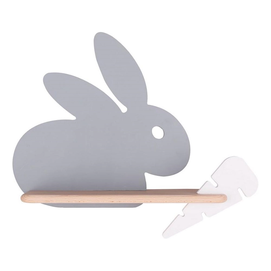 Lasten LED-seinävalaisin hyllyllä RABBIT LED/4W/230V harmaa/valkoinen/puu | Valomania
