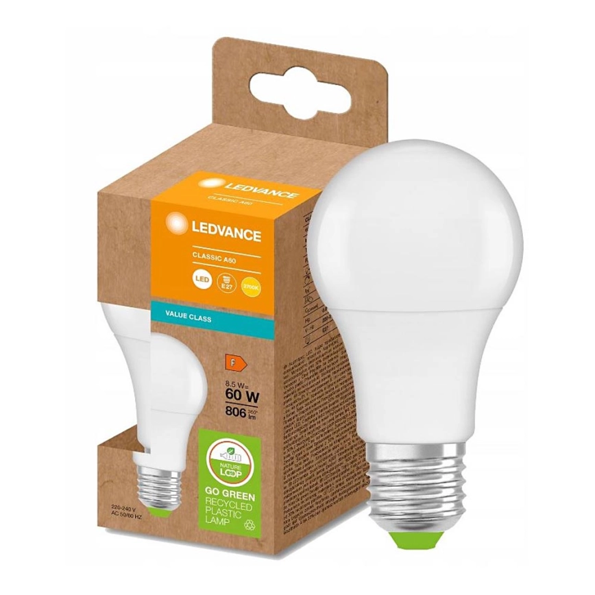 LED-lamppu kierrätetystä muovista A60 E27/8,5W/230V 2700K - Ledvance | Valomania