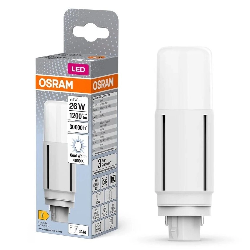 LED-polttimo G24d/9,5W/230V 4000K - Osram Laadukas muotoilu takaa täydellisen valaistuksen sisätiloissasi. Luokka G24d on omistettu polttimoille, joissa on sama kanta. Verkkokaupastamme voit valita joko perinteisistä hehkulampuista tai moderneista LED-polttimoista, jotka ovat energiatehokkaampia ja pitkäikäisempiä.