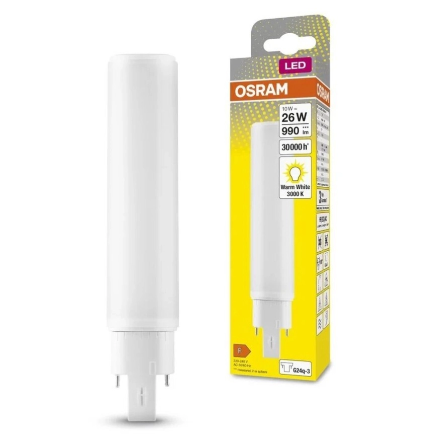 LED-polttimo G24q-3/10W/230V 3000K - Osram Laadukas muotoilu takaa täydellisen valaistuksen sisätiloissasi. Luokka G24q-3 on omistettu polttimoille, joissa on sama kanta. Verkkokaupastamme voit valita joko perinteisistä hehkulampuista tai moderneista LED-polttimoista, jotka ovat energiatehokkaampia ja pitkäikäisempiä.