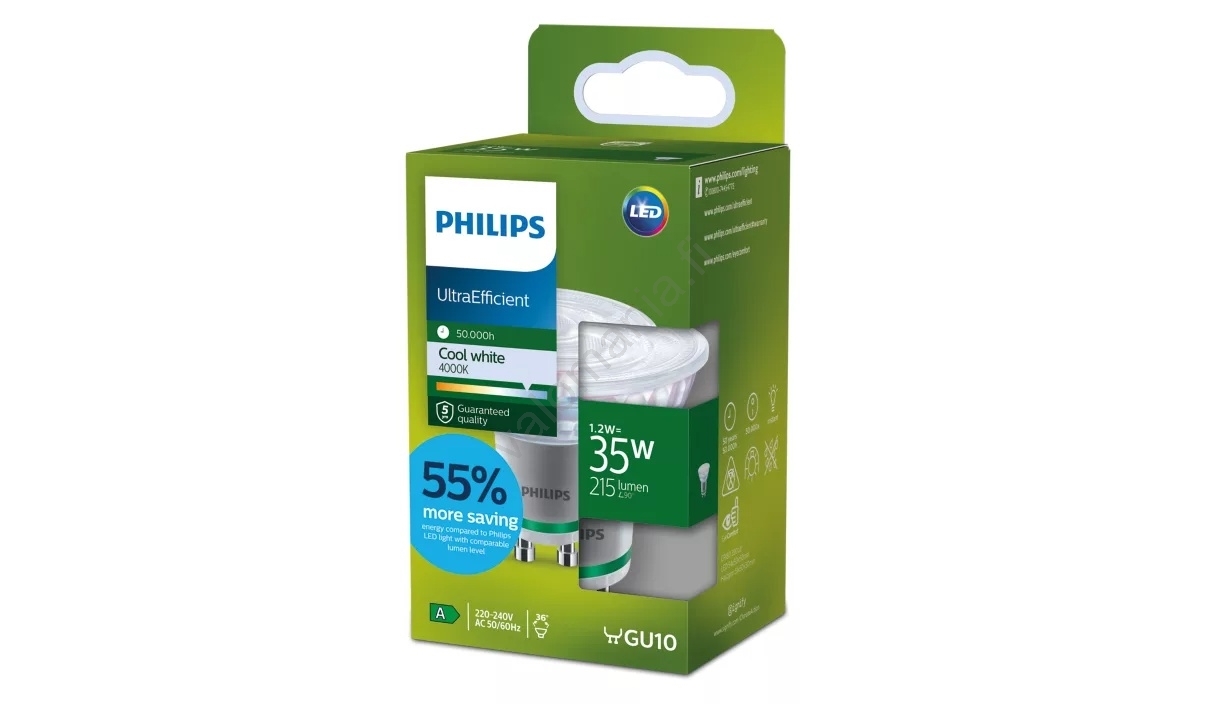 LED-polttimo ULTRAEFFICIENT Philips PAR16 GU10/1,2W/230V 4000K | Valomania