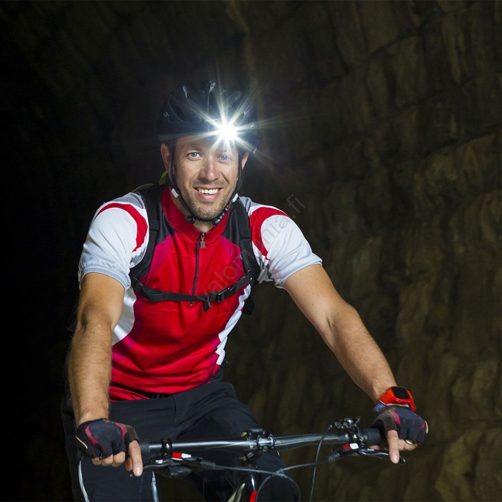 • Käytännöllinen otsalamppu ladattavalla akulla.