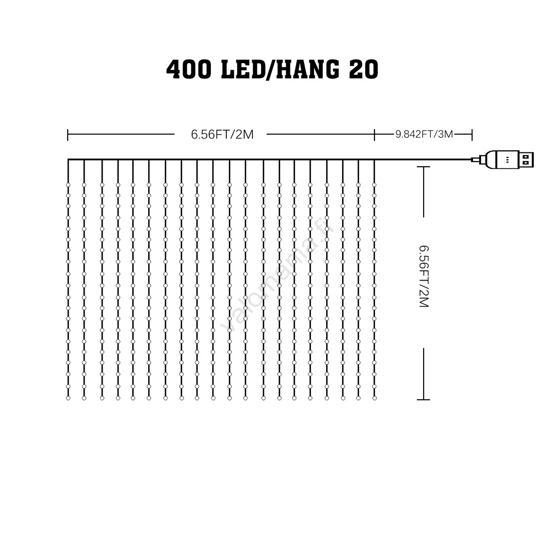 Himmennettävä LED RGB -valoverho WIZARD 400xLED/USB 2x2m + kaukosäädin | Valomania