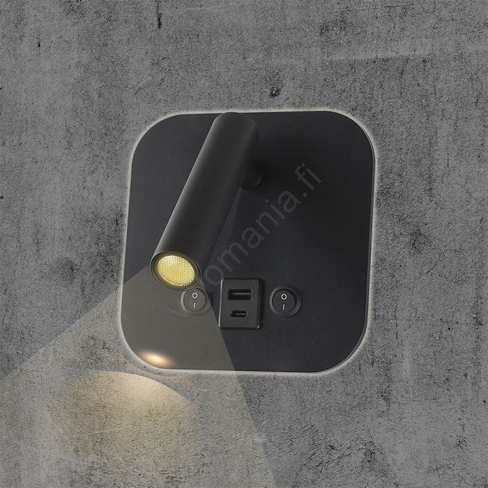 LED-seinäspotti USB-portilla LED/8W/230V 3000K musta | Valomania