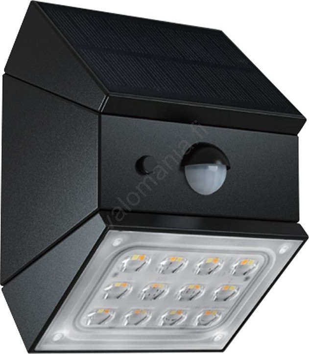 LED-seinävalaisin aurinkokennolla ja anturilla LED/2,5W/3,7V IP65 1200 mAh musta | Valomania