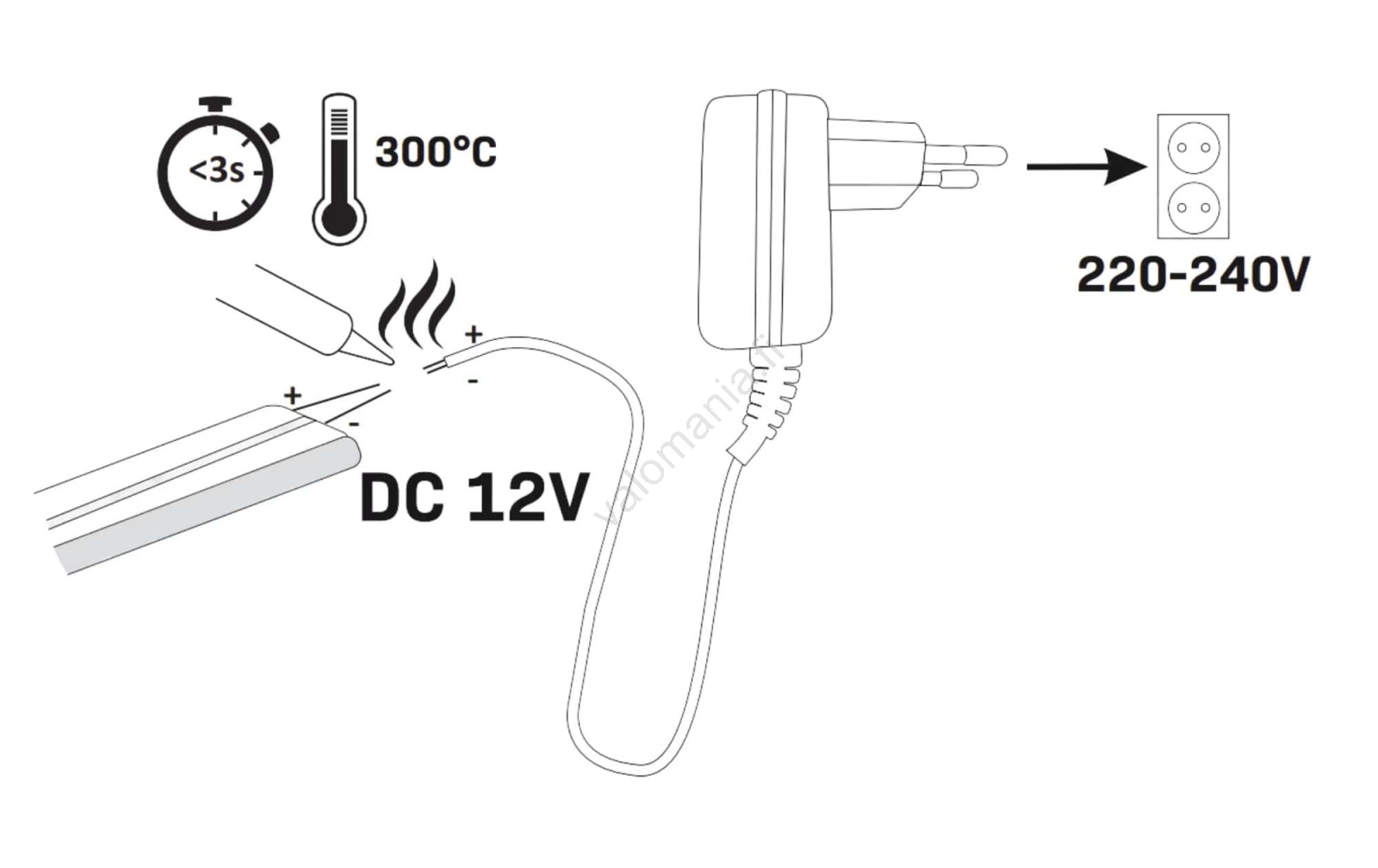 • Toimintaan vaaditaan vähintään 20 W elektroninen virtalähde LED-nauhoille (ei sisälly pakkaukseen).